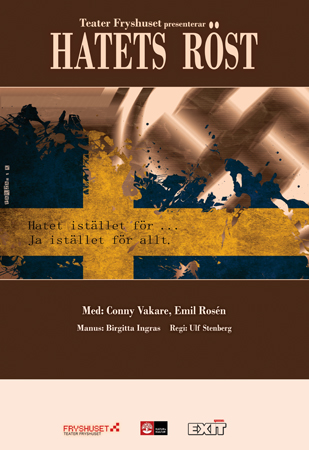 Måste puffa för ”Hatets röst”, en ny pjäs om vit makt-rörelsen. Såg genrepet på Fryshuset och det var redan riktigt bra trots att det var över en vecka till premiären och skådespelarna ännu inte var helt säkra på sina repliker.