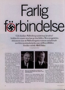 I Månadsjournalen 7:1999 fanns en artikel där jag gav en ny bild av hur bröderna Marcus och Jacob Wallenberg agerade under andra världskriget. Den skrev jag efter att jag fått kännedom om några upphittade brev som innehöll delvis ny information. Bland annat visade det sig att Jacob Wallenberg stött den konspiration som försökte mörda Adolf Hitler 1944.